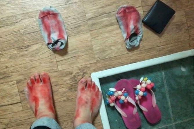 韓國正妹穿2.44美元大陸鞋 5分鐘內腳流血不止然後潰爛 0 奇趨, 怪人怪事 11:33 A+ A- Print Email 啊!看到上圖還以為被砍傷了,原來是韓國正妹買了大陸產的拖鞋產生的系列問題。 一韓國正妹在網路上買了3雙大陸產的人字拖鞋,其中綠色拖鞋穿上去沒過5分鐘就把腳染成了綠色。 紅色拖鞋更慘目忍睹,就像兇案現場一樣。 僅僅2.44美元售價,正妹穿著走了一段時間,就感覺腳背疼痛難忍。 腳背被磨成紅色,火辣辣的疼痛感讓正妹氣憤難忍。 過了一會腳上越來越嚴重了,擦了一點酒精消毒也無濟於事。 過了幾天開始腳上起水泡蛻皮。 平躺在床上,根本沒有辦法下床。 過了2天,腳背開始有血絲了。 腳變得其醜無比~~~ 真是不能買便宜貨啊~~